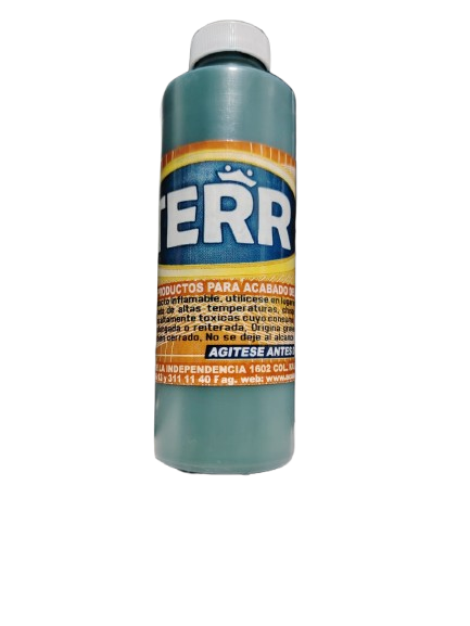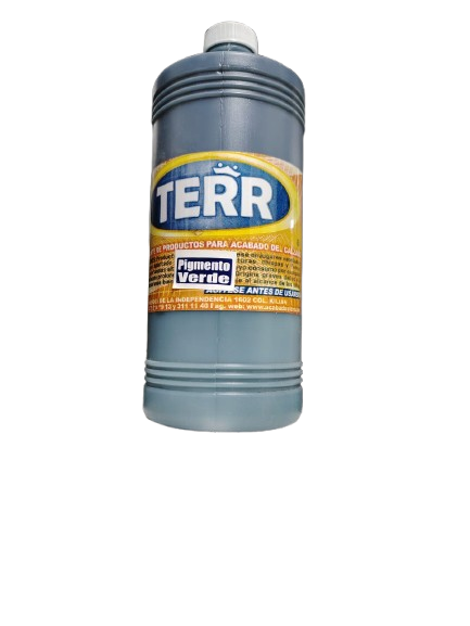 Pigmento TERR color verde base agua de 1 litro para calzado.