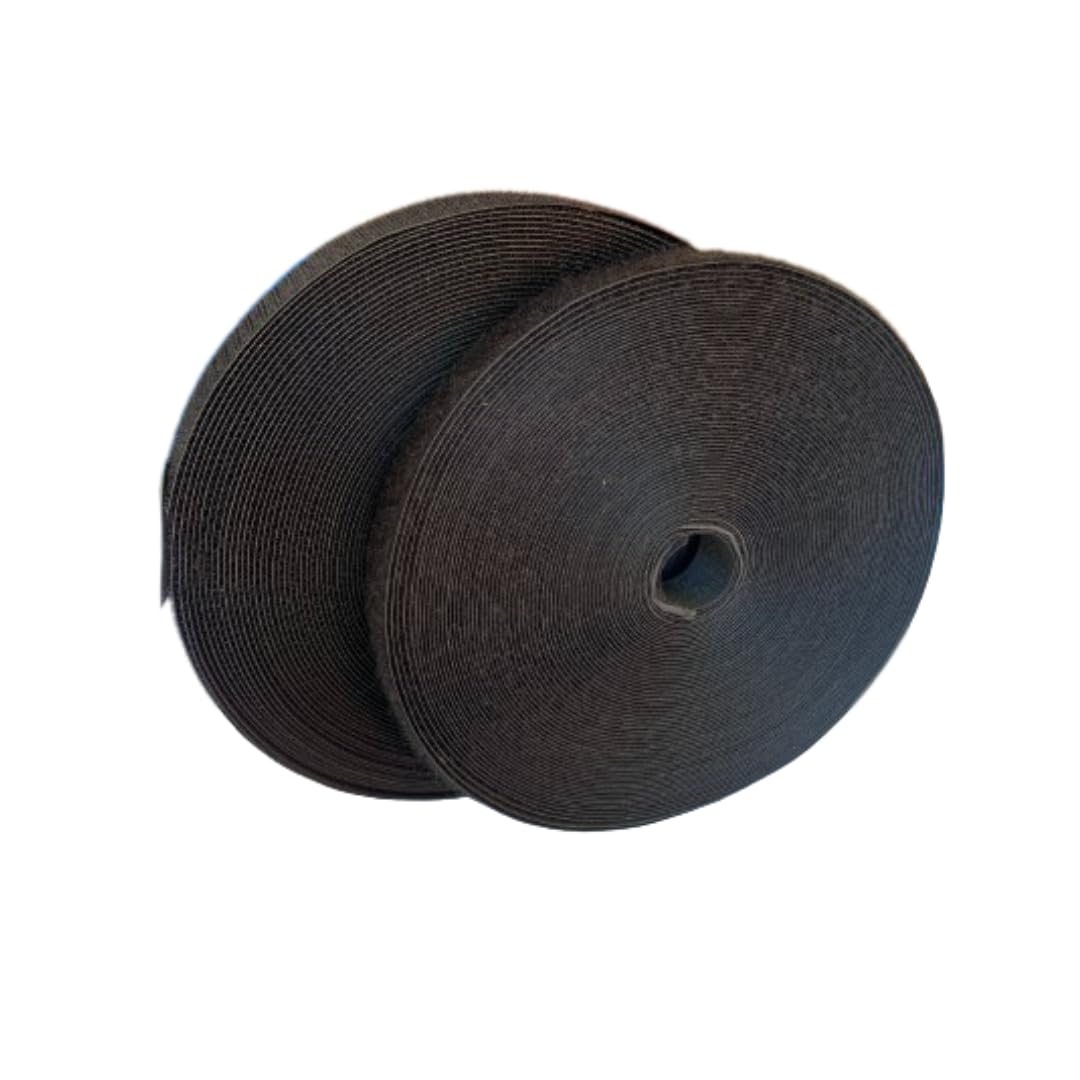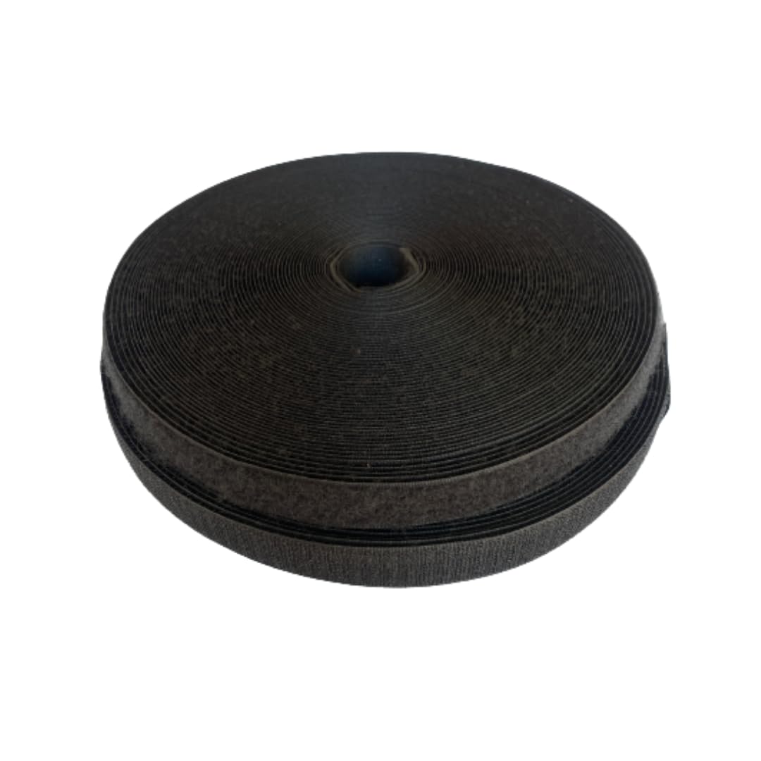 Juego de felpa y gancho negro de 20 milímetros Textiles León con 25 metros cada uno.